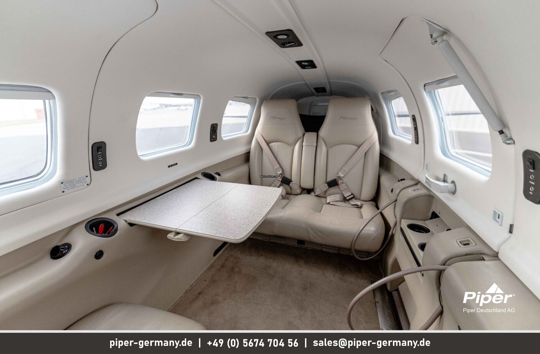| Bemerkungen/Sonstiges | This Piper Mirage, manufactured in 2012, has approximately 1105 total flight hours and is based in Northern Germany. It is powered by a Lycoming TIO-540-AE2A engine that has received a top end overhaul of the cylinders in 2023.