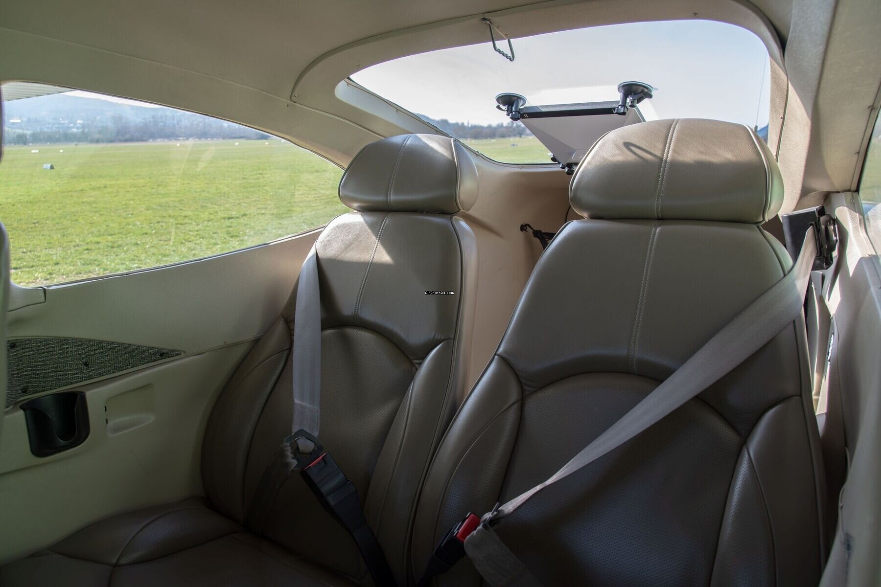 | Interieur | Step into a cockpit defined by its clean lines and inviting aesthetic. This 182T Skylane features a pristine Creme leather interior that reflects a high standard of care. The light-toned upholstery makes the cabin feel