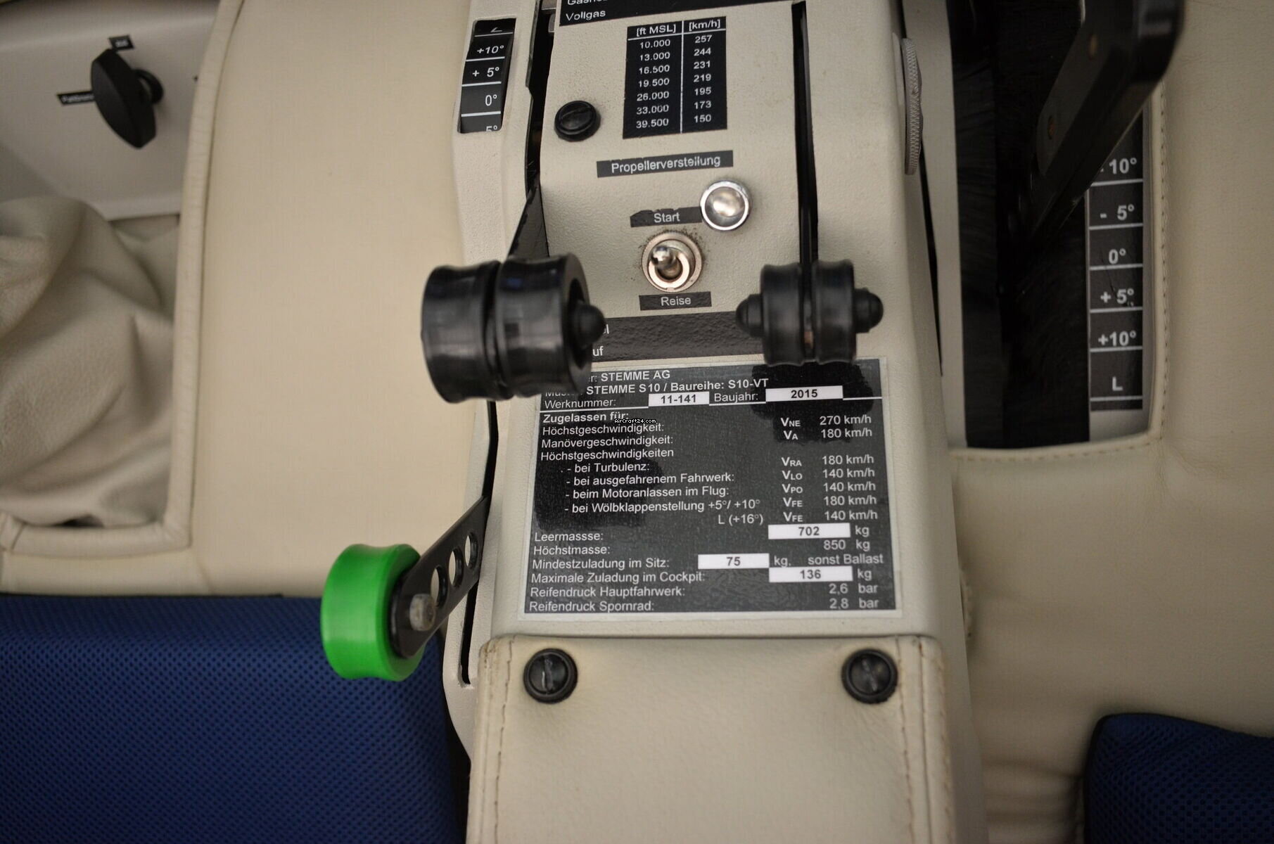 | Übersicht | | Typ: | Single-Prop | | Hersteller: | Stemme | | Modell: | S10-VT | | Baujahr: | 2015 | | RegistrierungsNr.: | D-KAIT | | Serien-Nr.: | 11-141 | | Eigenschaften: | Stets hangariert Schadensgeschichte | | Jahresnachpr.: | 10/2025 | | Standort: | Deutschland, Lingen (Ems), EDWN | | Gesamtzeit (TTAF): | 440 h | | Preis: | € 298.000 | | MwSt. ausweisbar: | nein | | Anzahl Passagiere: | 2 | | Landungen: | 324 |